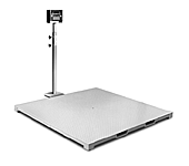 FORK LIFT PACKAGE All of the standard 660 features but with added fork lift skids for those applications requiring convenient and rapid transporting of the scale. Only three inches high, this scale maintains its low profile design with built in rails that permit easy pick up and transportation by most commonly used fork lifts. Also featured are heavy steel bumpers mounted on all four corners to protect the load cells and leveling feet from fork lift blades. Shown with optional attached indicator stand. |