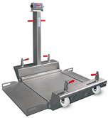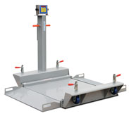 | MODEL 680-P2 Portable Scale Our 680-P2’s are built for incredible durability and easy transport. Easy lift wheel jacks make going from transport mode to weighing mode quick and simple. The super strong ramps are built with the same 3/16" thick steel as the weighing platform and folds back with ease to allow transport through most typical halls and doorways. The 4" poly bonded wheels roll with ease on even the most irregular factory or laboratory floor. MORE INFORMATION |