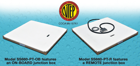 • “ON-BOARD” stainless steel NEMA IV, water seal rated junction box • Smooth plate stainless steel Type 304 • Stainless steel Type 304 construction • Capped and sealed stainless steel structural tubing • Stainless steel IP67 waterseal rated load cells • 20 ft. shielded signal cable • 100% end loading protection • 200% overload & shock load protection • Easy access leveling Model SS660-PT-R Features: |